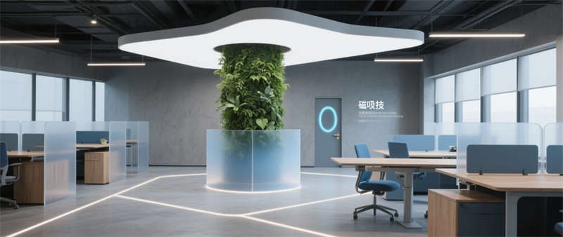 本項(xiàng)目以“未來(lái)生態(tài)辦公”為核心理念,打造1200㎡科技與自然交融的創(chuàng)新型辦公空間。設(shè)計(jì)采用啞光太空灰為主基調(diào),通過(guò)霧霾藍(lán)企業(yè)色原木紋理的碰撞,在冷峻科技感中注入人文溫度??臻g以微水泥地面為基底,貫穿透光亞克力陽(yáng)極氧化鋁材質(zhì),配合隱藏式線性燈帶的流動(dòng)光影,構(gòu)建出具有呼吸感的數(shù)字美學(xué)場(chǎng)域。