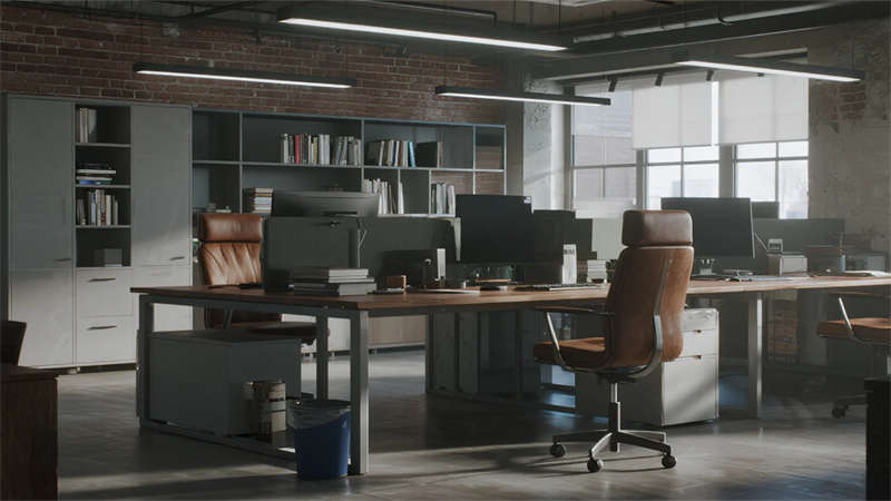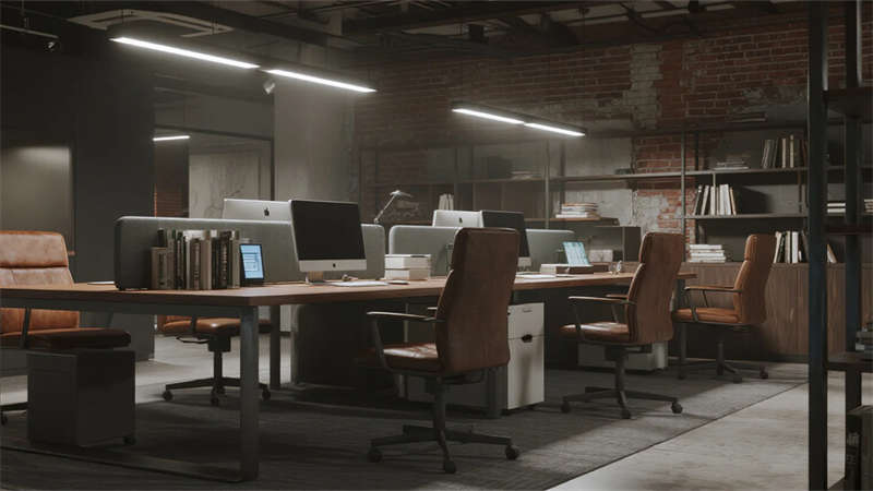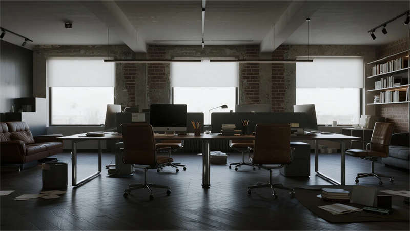 這組工業(yè)風(fēng)辦公室設(shè)計(jì)以裸露結(jié)構(gòu)和復(fù)古質(zhì)感為核心,通過(guò)混凝土、金屬和木質(zhì)材料的碰撞,打造出兼具實(shí)用性與藝術(shù)感的辦公空間??臻g保留了建筑的原始肌理,如天花板的管線和墻面的磚紋,搭配黑色鐵藝家具和深色調(diào)軟裝,營(yíng)造出冷峻而富有張力的氛圍。局部通過(guò)皮質(zhì)沙發(fā)、綠植和暖光燈具軟化工業(yè)風(fēng)的硬朗感,增添人文氣息。
