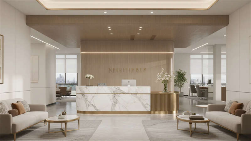 本設(shè)計以輕奢風格為核心,打造一個優(yōu)雅而舒適的辦公環(huán)境。外觀采用現(xiàn)代建筑語言,玻璃幕墻與金屬細節(jié)相結(jié)合,彰顯高端氣質(zhì)。內(nèi)部空間注重細節(jié)與品質(zhì),接待區(qū)以大理石前臺和金屬裝飾營造歡迎氛圍,開放式辦公區(qū)布局靈活,配備簡約家具和自然光元素,提升工作效率。會議室設(shè)計專業(yè)且智能,私人辦公室融合落地窗和 luxury 裝飾,提供靜謐工作空間。員工休息區(qū)與咖啡角注重舒適性,軟裝家具和溫馨 lighting 促進放松與交流。走廊區(qū)域通過藝術(shù)墻面和 lighting 效果增強空間感,整體設(shè)計融合材質(zhì)對比與柔和色調(diào),營造出精致而人性化的辦公體驗,強調(diào)美學與功能的平衡。