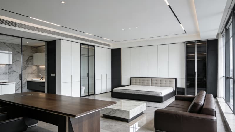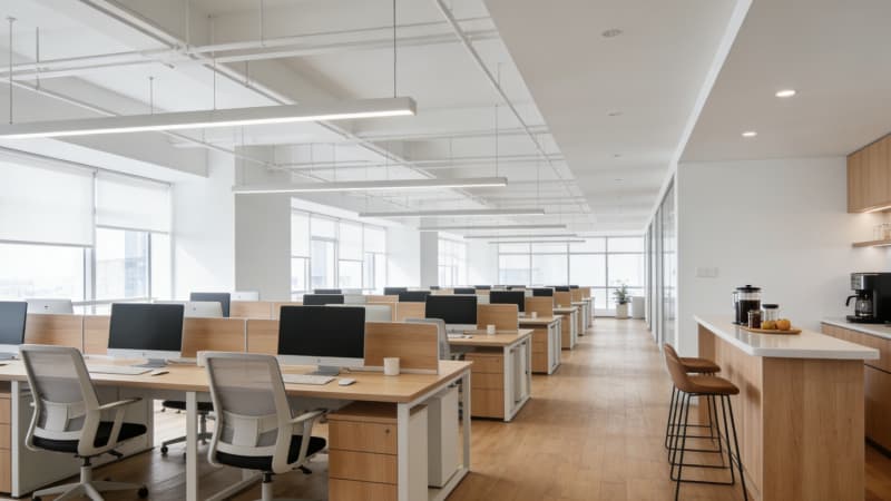 本方案為合肥2500平辦公室定制設(shè)計(jì),以現(xiàn)代簡(jiǎn)約風(fēng)為核心基調(diào),實(shí)現(xiàn)全空間風(fēng)格統(tǒng)一,兼顧實(shí)用性與品牌質(zhì)感。外觀采用極簡(jiǎn)線條搭配通透玻璃幕墻,融入合肥城市建筑美學(xué)元素,打造極具辨識(shí)度的商務(wù)形象。大堂以開闊挑高設(shè)計(jì)開篇,搭配淺色系石材與金屬線條,搭配藝術(shù)裝置提升企業(yè)格調(diào)。4個(gè)開放式辦公區(qū)按職能分區(qū)規(guī)劃,優(yōu)化采光與動(dòng)線設(shè)計(jì),配置人體工學(xué)辦公家具與靈活隔斷,平衡協(xié)作效率與獨(dú)立辦公需求。經(jīng)理辦公室側(cè)重私密與高效,總裁辦公室則融入輕奢細(xì)節(jié)與定制化收納,彰顯專屬格調(diào)。會(huì)議室按規(guī)模配置智能會(huì)議系統(tǒng),適配培訓(xùn)、洽談等多元場(chǎng)景。整體設(shè)計(jì)聚焦空間利用率提升,選用環(huán)保建材與智能設(shè)備,貼合合肥企業(yè)辦公場(chǎng)景需求,既滿足員工舒適辦公需求,又傳遞企業(yè)專業(yè)商務(wù)形象。