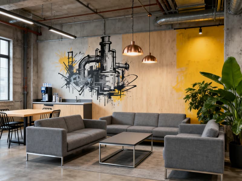 設計中注重實用性與安全性,生產車間與倉儲區域采用耐磨、防滑、防腐蝕的地面材質,設置清晰的標識線與安全警示,保障生產操作的規范與安全;研發實驗室按專業標準規劃布局,配備必要的安全設施,滿足研發工作的嚴謹需求。同時,通過員工休息區的溫馨設計、辦公區的綠植點綴,為工業空間注入人文關懷,緩解工作壓力。