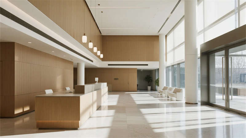 本辦公樓設(shè)計以現(xiàn)代簡約美學(xué)為基調(diào),營造出寧靜而高效的商務(wù)環(huán)境。建筑外觀采用純凈的玻璃幕墻與利落線條,在光影交錯中呈現(xiàn)輕盈通透的視覺體驗;步入大廳,淺色石材與溫潤木質(zhì)元素相融,挑高空間與落地窗引入豐沛自然光,傳遞開放包容的氛圍。內(nèi)部功能區(qū)布局注重人性化:開放式辦公區(qū)以靈活隔斷促進協(xié)作,綠植點綴為空間注入生機;簡約會議室配備智能設(shè)施,滿足高效溝通需求。員工休憩區(qū)與樓頂花園成為亮點——前者以暖色調(diào)家具打造社交角落,后者則用木質(zhì)平臺、綠籬與城市天際線共構(gòu)都市綠洲,讓工作者在忙碌之余俯瞰風(fēng)景、釋放壓力。電梯廳與衛(wèi)浴空間延續(xù)統(tǒng)一設(shè)計語言,細(xì)節(jié)處體現(xiàn)精致工藝。整體設(shè)計將自然、光感與簡約哲學(xué)交織,創(chuàng)造一處兼具理性效率與人文溫度的辦公場所。