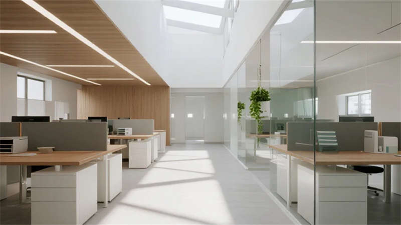 合肥辦公樓裝修設計效果圖,光影交織綠意