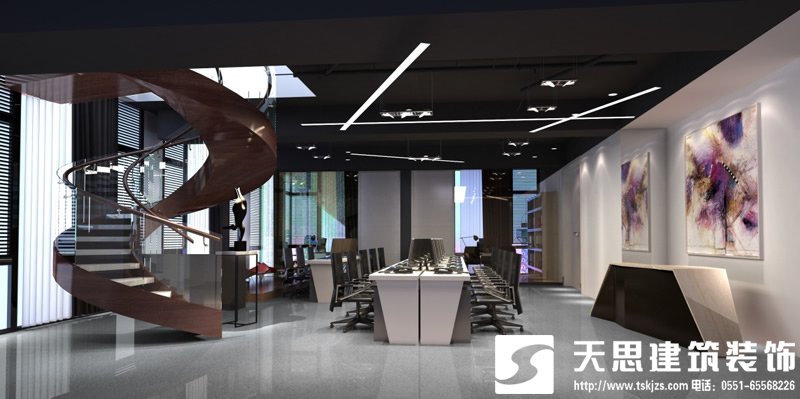 員工辦公空間設計應根據工作需要和部門人數并參考建筑結構設定面積和位置。首先應平衡各室之間的大關系,然后再作室內安排。布置時應注意不同工作的使用要求,如對外接洽的,要面向門口;做文案和設計的,則應有相對安靜的空間。還要注意人和家具、設備、空間、通道的關系,確保使用方便、合理、安全。辦公臺多為平行垂直方向擺設。大的辦公空間,做整齊的斜向排列也頗有新意,但要注意使用方便和與整體風格協調。