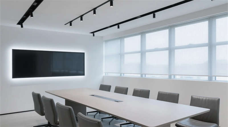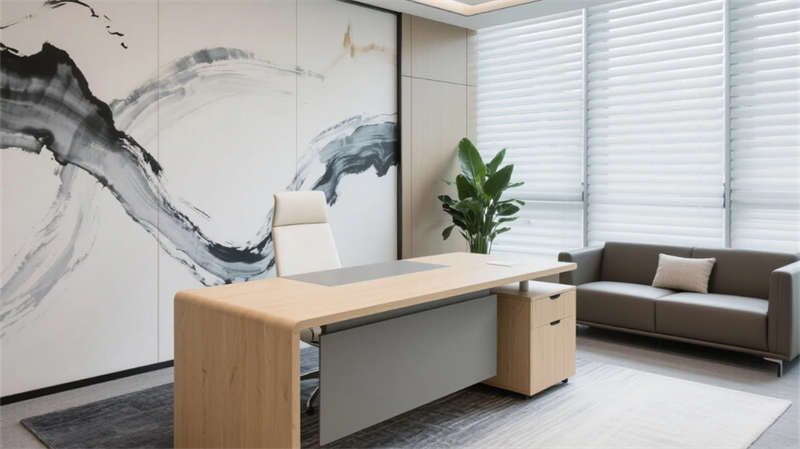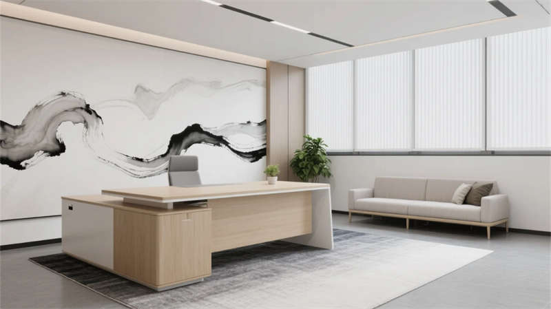 該設(shè)計(jì)以現(xiàn)代簡(jiǎn)約語言重構(gòu)辦公空間秩序,通過光影與材質(zhì)的精妙平衡,營(yíng)造滁州商務(wù)美學(xué)的當(dāng)代樣本。空間以淺木、暖灰與啞光白為主調(diào),線性光帶貫穿各區(qū)域,形成視覺連續(xù)性。開放辦公區(qū)借落地窗引入瑯琊山景光影,百葉簾調(diào)節(jié)自然與人工光的韻律;協(xié)作區(qū)弧形沙發(fā)與綠植墻柔化幾何理性,激發(fā)團(tuán)隊(duì)創(chuàng)造力。