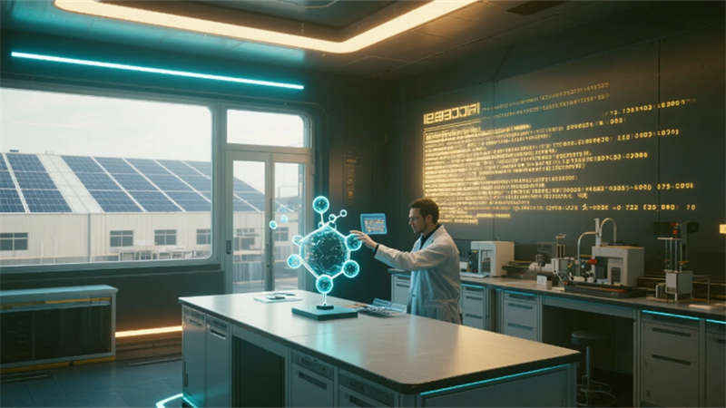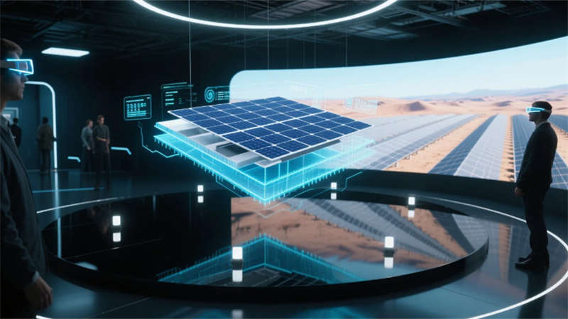 技術展廳打破虛實界限,光伏組件剖面的微光粒子在AR交互中躍動,沙漠電站的全息投影與真實光照系統共舞。研發中心的螺旋實驗臺如基因鏈盤旋上升,透明隔離門映出窗外光伏屋頂的波紋光影,潔凈度標識在氣流中浮沉若星。