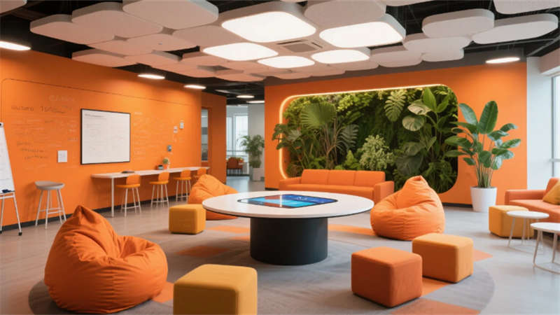 步入其中,純凈的白色與淺灰基調(diào)構(gòu)筑出開闊明亮的基底,大面積玻璃幕墻邀請陽光自由流淌。室內(nèi),垂直綠墻與蔥郁盆栽如音符般跳躍,為嚴(yán)謹(jǐn)?shù)难邪l(fā)環(huán)境注入蓬勃生機。開放辦公區(qū)強調(diào)協(xié)作與靈活,可書寫的玻璃墻面激發(fā)無限創(chuàng)意;高度自動化的核心生產(chǎn)車間則如同精密的樂章,潔凈無塵的環(huán)境、流線型的自動化設(shè)備與身著無塵服的工程師,共同演繹著尖端制造的嚴(yán)謹(jǐn)與高效。從充滿科技藝術(shù)感的展示廳、活力四射的創(chuàng)意協(xié)作區(qū),到靜謐專注的工作艙、溫馨舒適的休憩社交中心,再到專業(yè)大氣的會議空間,每一處功能區(qū)域都浸潤著統(tǒng)一的未來主義美學(xué)——簡約的線條、智能的光影、環(huán)保的材質(zhì)與克制的企業(yè)色點綴。
