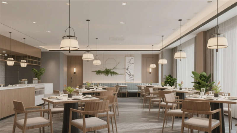 這個酒店設計以現代簡約風格為核心,通過統一的色調和元素,創造出和諧而優雅的空間體驗。大堂作為入口,以淺木色和白色為主調,配以舒適的沙發和綠植,營造出welcoming的氛圍。前臺延續簡約理念,木質柜臺和藝術細節彰顯精致感。餐廳采用開放式布局,木質桌椅和吊燈的點綴,讓用餐時刻充滿輕松與自然氣息。酒吧區則以深色吧臺和暖光照明,提供私密而時尚的社交空間??头吭O計注重舒適與隱私,大窗戶引入城市景觀,簡約家具確保寧靜的休憩環境。會議室專業而高效,中性色調和隱藏照明支持專注的商務活動。健身房融入鏡面和綠植,活力十足又不失簡約美感。水療區則強調寧靜,柔和燈光和自然元素促進身心放松。整個項目強調人與環境的連接,每個功能區都服務于寧靜與精致的整體體驗,為賓客打造難忘之旅。