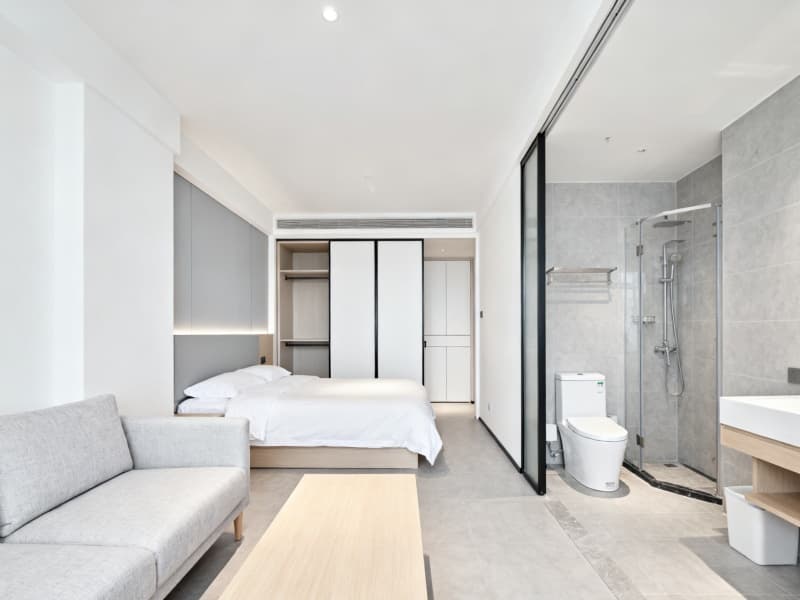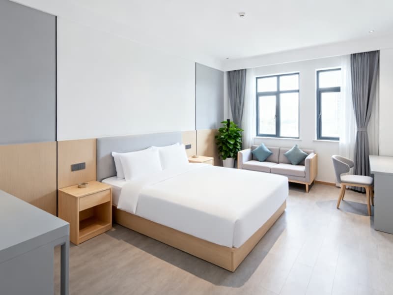 整體設(shè)計(jì)既符合現(xiàn)代酒店的簡(jiǎn)約審美趨勢(shì),又充分適配客人的居住需求,讓2000平的酒店空間不僅具備完善的功能,更能成為客人短暫停留期間的舒適休憩場(chǎng)所,傳遞輕松、自在的居住氛圍。