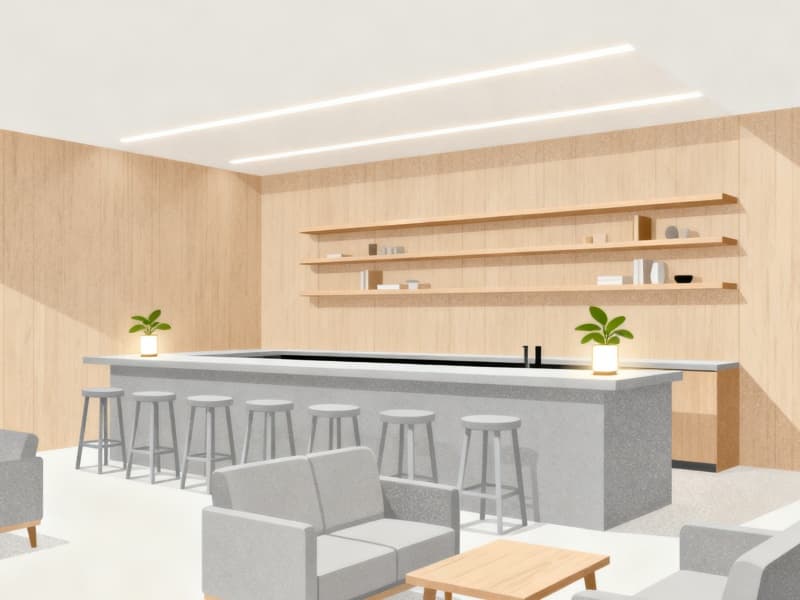 設(shè)計(jì)中注重細(xì)節(jié)的把控,從地面材質(zhì)的選擇(如走廊的靜音地毯),到照明的搭配(如茶吧的間接照明),再到綠植的點(diǎn)綴,每一處細(xì)節(jié)都圍繞“簡(jiǎn)約舒適”展開(kāi)。既保證空間的整潔有序,又通過(guò)柔軟的材質(zhì)、柔和的光線與自然綠植,為簡(jiǎn)約空間注入溫度,避免過(guò)度簡(jiǎn)約帶來(lái)的生硬感。?