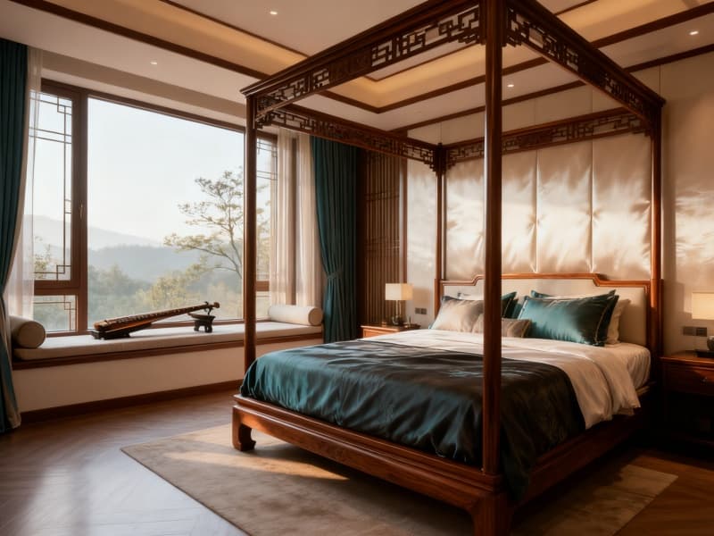 本設(shè)計以中式新古典風(fēng)格為核心,為合肥民宿勾勒出兼具古韻與雅致的居住空間。外觀設(shè)計融入傳統(tǒng)建筑的對稱美學(xué),青瓦與木構(gòu)相映,清晨柔光灑落時,墻面與門窗的線條更顯溫潤,搭配門前錯落的綠植,悄然營造出清幽靜謐的氛圍,既保留中式韻味,又不失現(xiàn)代居住的舒適感。?