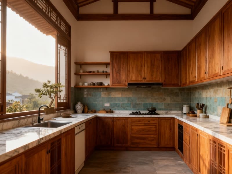 衛(wèi)浴與廚房區(qū)域同樣延續(xù)風(fēng)格,原木元素與簡潔潔具、廚具搭配,既保證實用功能,又讓中式新古典的寧靜感貫穿始終。整體設(shè)計摒棄繁雜裝飾,以清晨柔光為引,用原木紋理傳遞自然溫度,讓合肥民宿成為可暫避喧囂、感受中式雅致的寧靜居所。