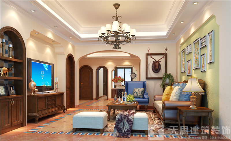 設計簡介:美式風格講究自在、隨意的不羈生活方式,沒有太多造作的修飾與約束,不經意中也成就了另外一種休閑式的文化感、有貴氣感,還不能缺乏自在感與情調感的浪漫。造型簡單、明快,而且實用,懷舊、浪漫和尊重時間。