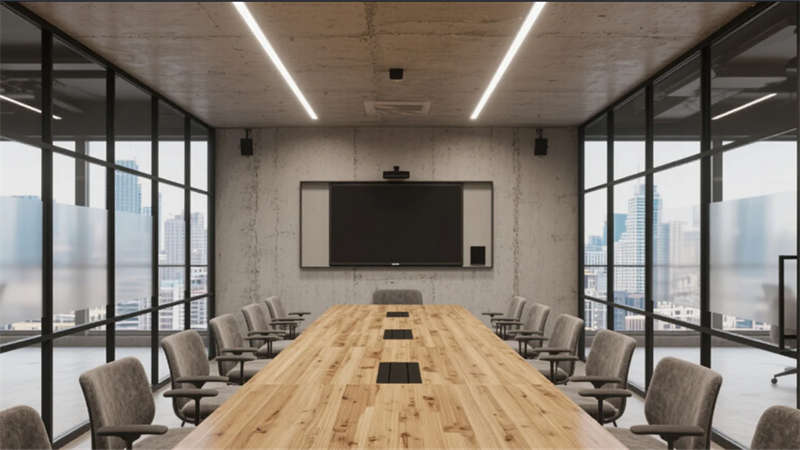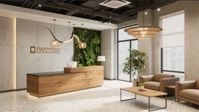 設計從本土氣質中汲取靈感:圖書角的階梯書屋如皖北梯田般層疊上升,生態休閑區的苔蘚墻面呼應淮北平原的綠意,竹木色調貫穿始終,在工業框架中注入自然呼吸感。創意沙龍區采用可重組家具,鼓勵思維碰撞;而半透明的會議室隔斷則隱喻開放溝通的企業精神。
