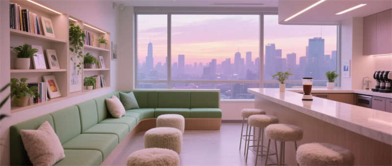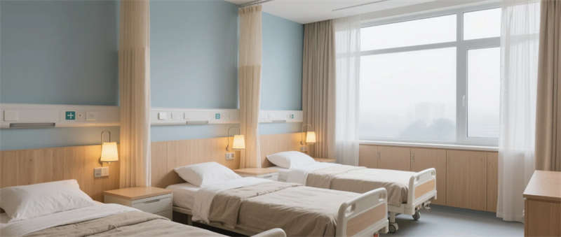 病房區(qū)引入景觀窗體系,將城市綠蔭轉(zhuǎn)化為動(dòng)態(tài)療養(yǎng)畫(huà)作,可調(diào)節(jié)光環(huán)境適配不同康復(fù)需求。核心的康復(fù)花園成為情感樞紐,蜿蜒小徑與冥想臺(tái)引導(dǎo)患者進(jìn)行感官重建。醫(yī)護(hù)空間中暖調(diào)材質(zhì)與私密卡座,為高強(qiáng)度工作提供精神緩沖。