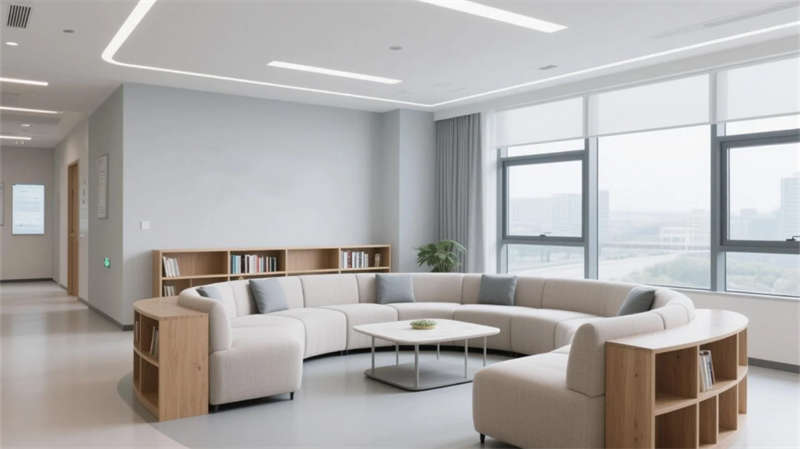該社區醫院設計以現代簡約理念為核心,營造出溫馨而高效的醫療環境。整體空間強調人性化布局,接待大廳寬敞明亮,弧形接待臺與自然光結合,營造親切的第一印象。候診區舒適寧靜,沙發與書架的點綴減輕等待焦慮,診室則注重隱私與專業感,柔和色調提升患者信任。藥房設計簡潔清晰,便于快速取藥,急診室布局高效,確保緊急響應流暢。化驗室和影像科突出功能性,無菌環境與設備集成保障精準診療,康復區開放通透,綠植與自然光促進身心恢復。所有區域統一運用中性色調、木質元素和流線型家具,強化視覺連貫性,同時融入充足采光與綠意,打造舒緩氛圍。設計不僅提升醫療體驗,還呼應了合肥的城市人文特色,為居民提供一處安心、便捷的健康港灣。