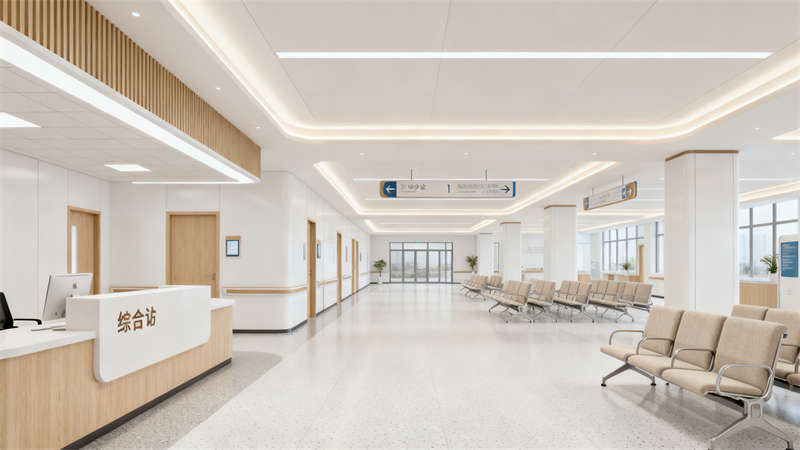 室內(nèi)空間在保持風(fēng)格統(tǒng)一的同時(shí),兼顧不同區(qū)域的功能特性。門診區(qū)域動(dòng)線清晰,布局合理,避免患者往返奔波,墻面以柔和的色調(diào)為主,搭配簡約的裝飾元素,營造清爽有序的環(huán)境;候診區(qū)融入自然元素,柔和的燈光、舒適的座椅與綠植點(diǎn)綴相得益彰,有效緩解患者等待時(shí)的煩躁情緒;病房空間注重私密性與舒適性,軟裝選擇以溫馨色調(diào)為主,家具擺放兼顧實(shí)用與便捷,讓患者仿佛置身“家一般”的休憩環(huán)境,助力康復(fù);診療室與護(hù)士站強(qiáng)調(diào)高效與便捷,合理的功能分區(qū)讓醫(yī)護(hù)工作更順暢,同時(shí)通過親切的設(shè)計(jì)細(xì)節(jié)拉近與患者的距離;康復(fù)區(qū)域與走廊設(shè)計(jì)延續(xù)溫潤風(fēng)格,避免生硬的空間劃分,通過連貫的視覺元素讓整個(gè)醫(yī)院空間形成有機(jī)整體,既方便患者活動(dòng),又讓醫(yī)護(hù)工作更高效,真正實(shí)現(xiàn)“以患者為中心”的設(shè)計(jì)初衷,讓醫(yī)療空間不僅具備診療功能,更成為助力身心康復(fù)的療愈場所。