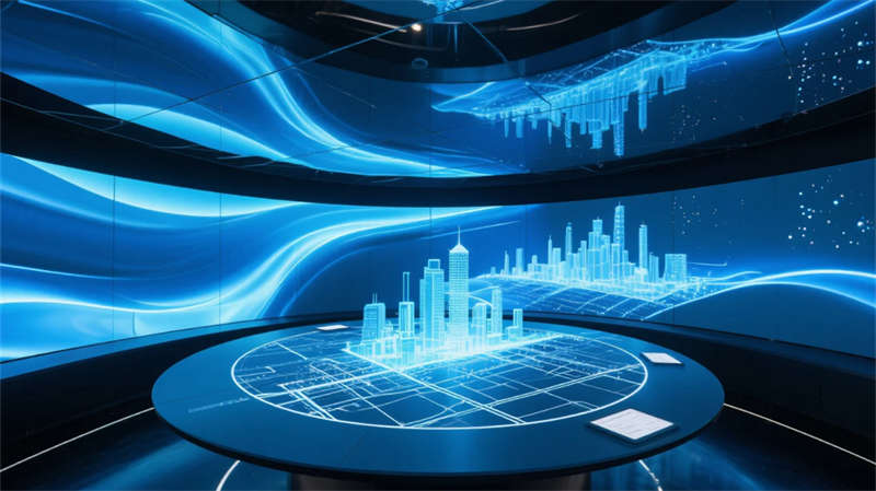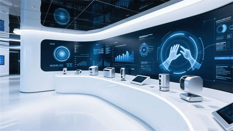 全廳采用模塊化智慧系統(tǒng),互動(dòng)桌面、全息投影與流體藝術(shù)墻實(shí)時(shí)響應(yīng)參觀行為,在展示功能性與人文關(guān)懷間建立精妙平衡。最終的未來(lái)暢想?yún)^(qū)以鏡像空間延展視覺維度,在粒子光舞中激發(fā)創(chuàng)新對(duì)話——這里不僅是企業(yè)實(shí)力的窗口,更是合肥創(chuàng)新精神的沉浸式體驗(yàn)場(chǎng)域。