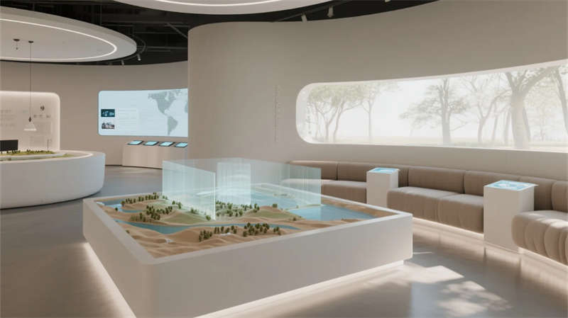 這座展廳以現(xiàn)代簡約風格為核心,打造流暢而富有張力的空間體驗。入口區(qū)以開放姿態(tài)迎接參觀者,核心展示區(qū)陳列創(chuàng)新展品,互動區(qū)通過科技裝置激發(fā)探索樂趣。多媒體區(qū)以視聽盛宴強化敘事,休息區(qū)則提供舒適角落促進交流,會議區(qū)靈活多變適應多樣需求。主題區(qū)巧妙融入本土特色,未來區(qū)以先鋒設計點燃靈感火花。整體設計中,簡潔線條與中性色調(diào)營造寧靜基調(diào),高科技元素如數(shù)字屏和智能照明無縫融入,增強功能性與藝術感。空間動線自然引導,從喧囂到沉思,材質(zhì)選用環(huán)保而溫暖,綠植點綴平衡科技冷峻。展廳不僅服務于展示,更成為啟發(fā)對話與思考的場所,每一功能區(qū)銜接緊密,共同編織一場關于未來的故事。在合肥這座活力之城,設計以包容姿態(tài)回應城市脈動,為公眾帶來沉浸式文化之旅。